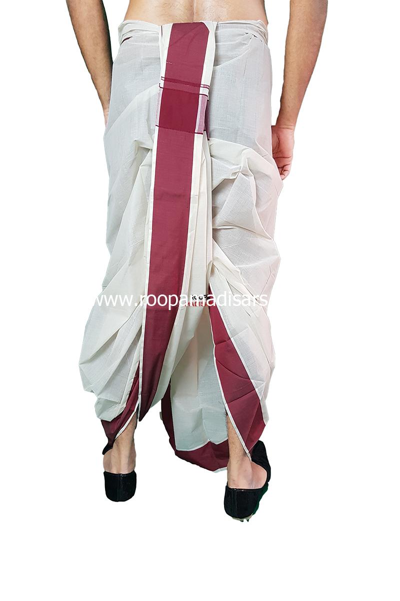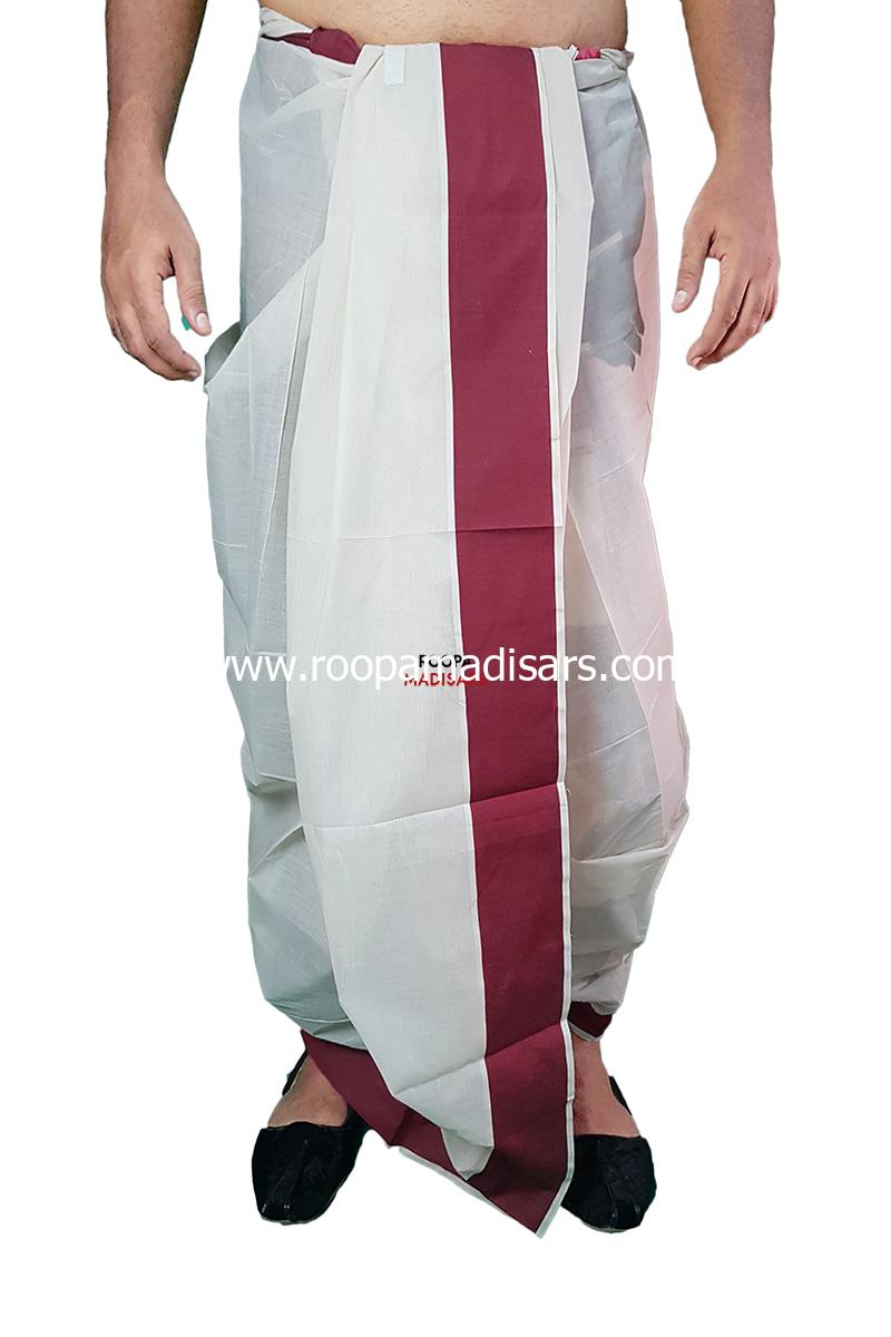 Men’s Cotton Readymade Panchakacham Dhotis with lining and inner pocket – plain border maroon