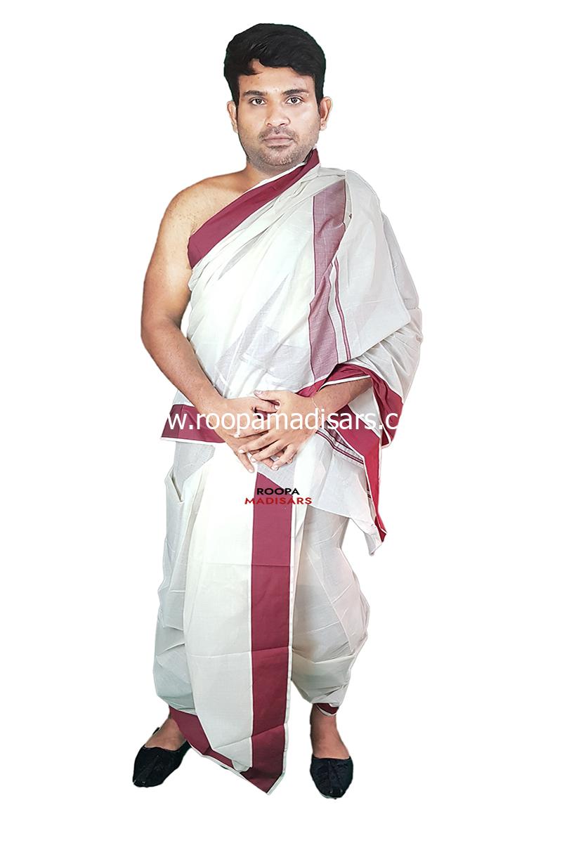 dhoti : Unbleached Readymade panchakacham plain border Dhoti with Angavastram. comes with lining and inner pocket